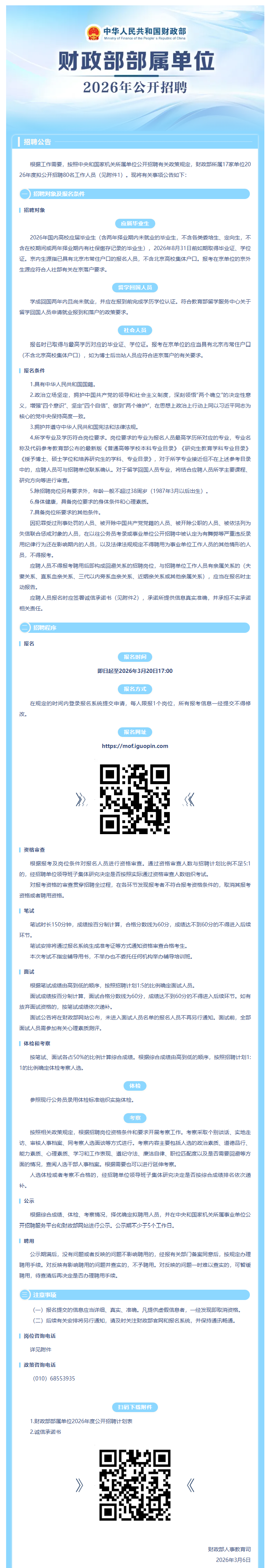 财政部部属单位2026年度公开招聘公告